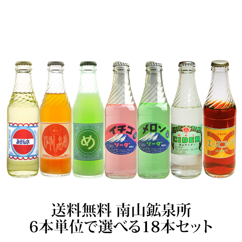 送料無料 南山鉱泉所 レトロな瓶ジュースが6本単位で選べる 18本セット