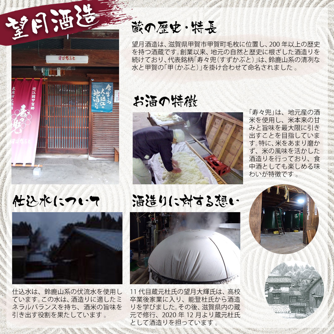 搾りたての生原酒を加熱処理せずに、当蔵独自の技法により三年間低温貯蔵された特別限定品です。生のまま寝かされた原酒は、時に磨かれ熟成して、芳醇で濃密な味を醸し出しています。 ●酒質:熟成古酒 ●内容量:720ml瓶 ●原料米:日本晴 ●アルコール度数:18度 ●精米歩合:70% ●日本酒度:-1 ●酸度:1.8 ●販売者:望月酒造株式会社