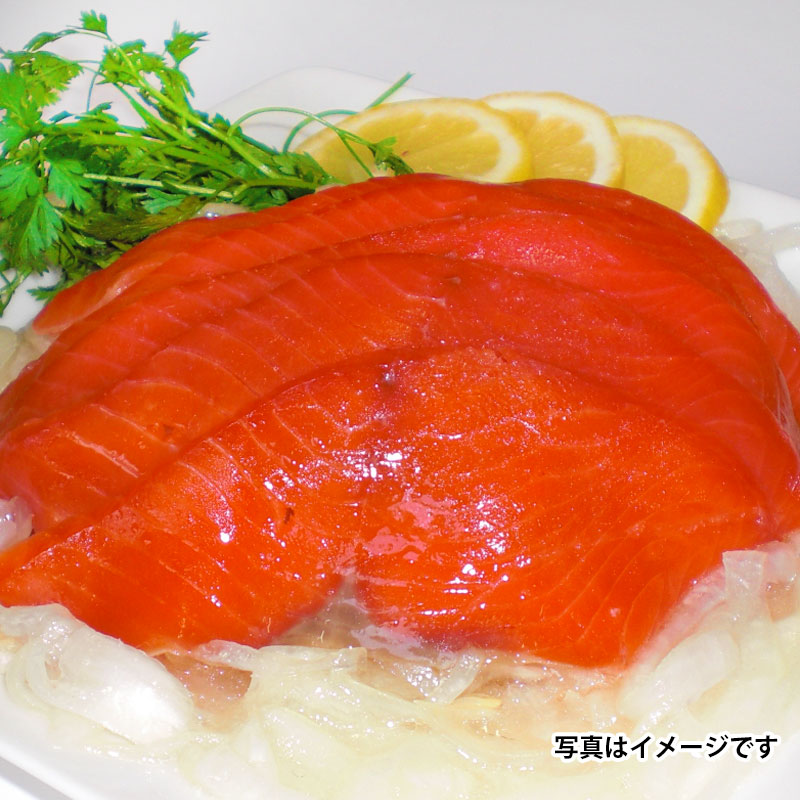 紅鮭スモークサーモンと玉葱をオリジナルドレッシングで和えてマリネに仕上げました。スモークサーモン専門店中村屋がお届けする自慢の逸品です。
