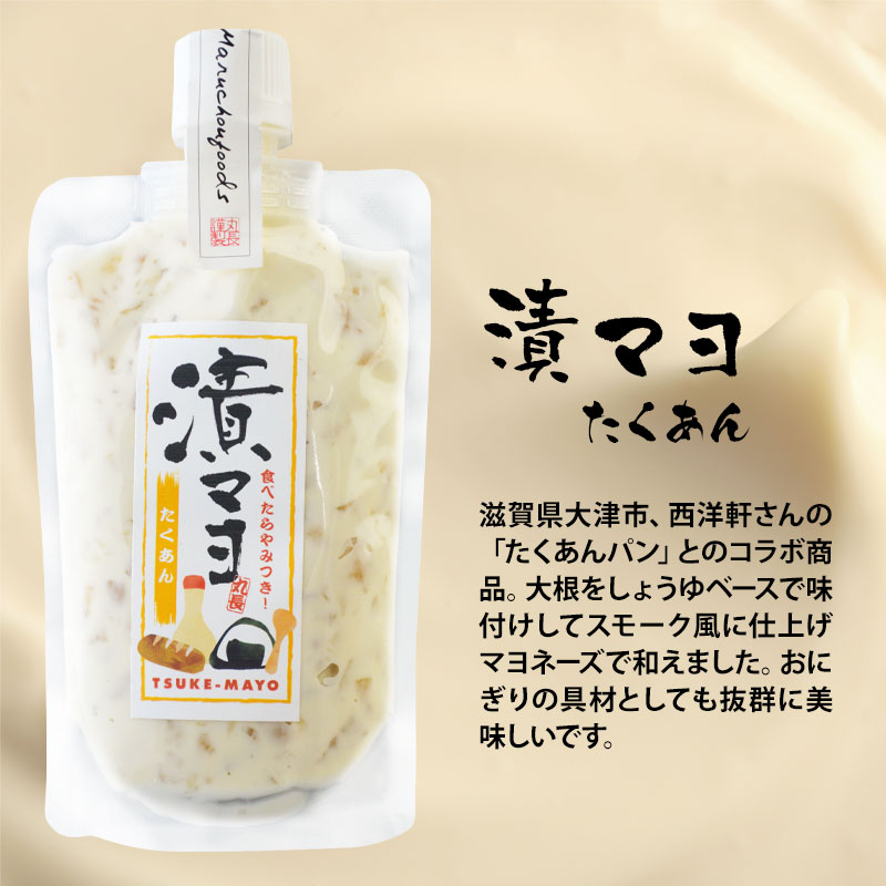 【たくあん】滋賀県大津市、西洋軒さんの「たくあんパン」とのコラボ商品。大根をしょうゆベースで味付けしてスモーク風に仕上げマヨネーズで和えました。おにぎりの具材としても抜群に美味しいです。