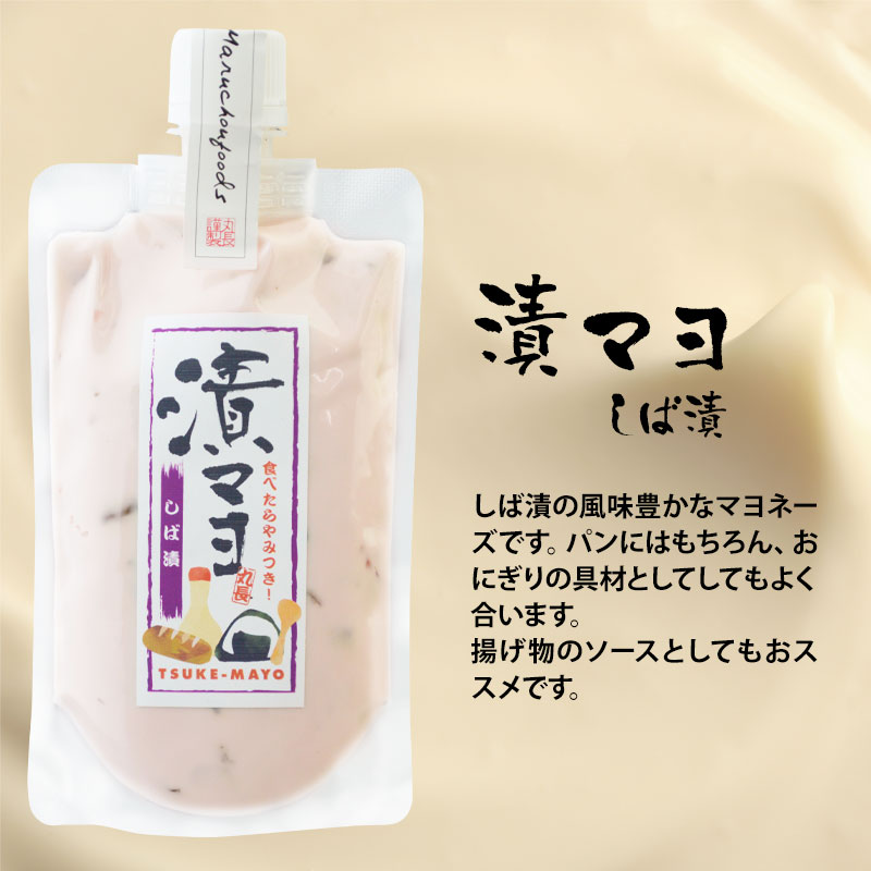【しば漬】しば漬の風味豊かなマヨネーズです。パンにはもちろん、おにぎりの具材としてしてもよく合います。 揚げ物のソースとしてもおススメです。