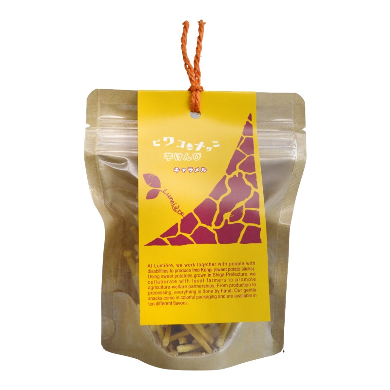 パリッと香ばしい芋けんぴに、キャラメルをからめました。お子さまのおやつにも、大人のブレイクタイムにも。
