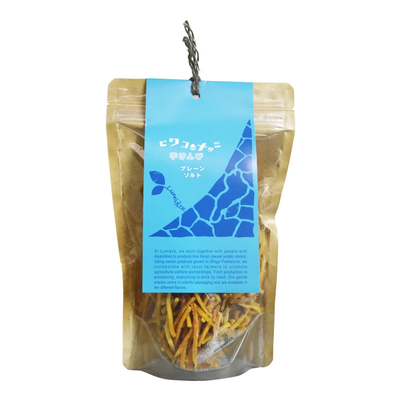 自然の甘さに、ちょっとだけ塩をひとふり。甘すぎず、しょっぱすぎず、おやつにもおつまみにもぴったりの絶妙バランス。 ●名称:ルミエル ビワコノメグミ 芋けんぴ プレーンソルト●内容量:100g●原材料名:さつまいも(滋賀県産)、植物性油脂、てんさい糖、食塩●栄養成分:熱量511.5kcalたんぱく質1.2g脂質23g炭水化物74.9g食塩相当量0.9g●賞味期限:4ヶ月●保存方法:直射日光・高温多湿を避け常温で保存してください●販売者:NPO法人ルミエル