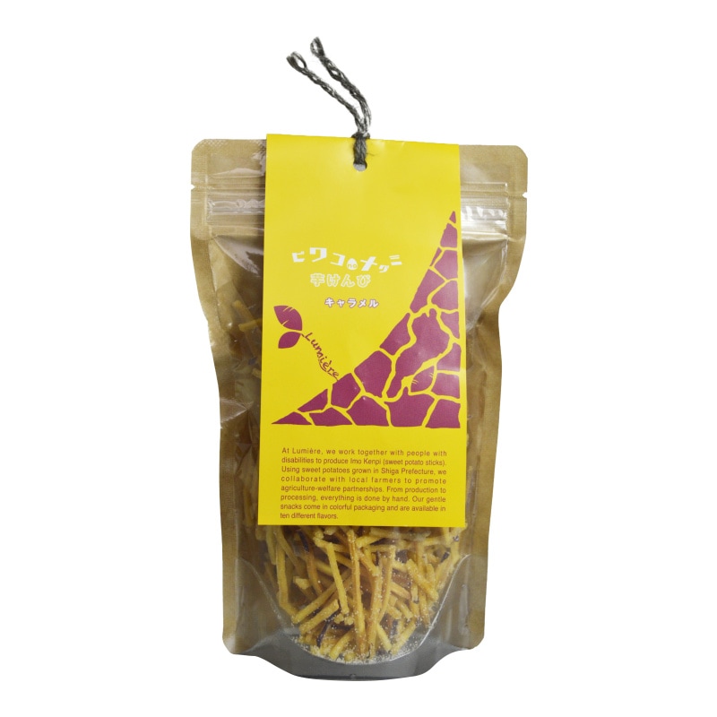 パリッと香ばしい芋けんぴに、キャラメルをからめました。お子さまのおやつにも、大人のブレイクタイムにも。