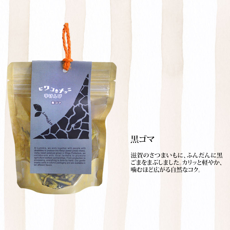 【黒ゴマ】滋賀のさつまいもに、ふんだんに黒ごまをまぶしました。カリッと軽やか、噛むほど広がる自然なコク。